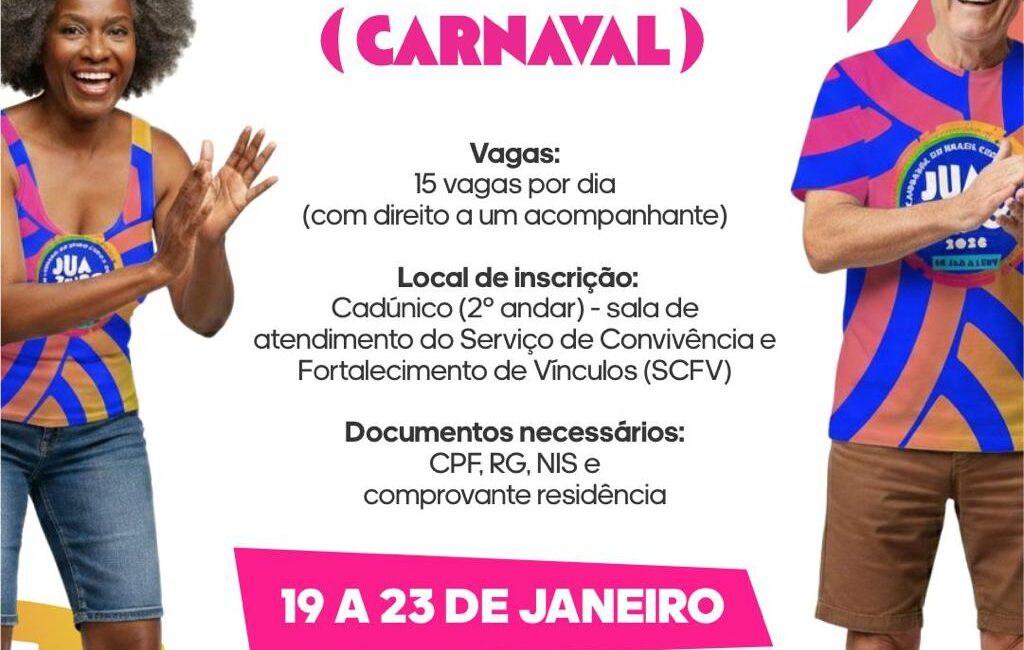 Os preparativos para o Carnaval de Juazeiro seguem a todo vapor e, a partir da próxima segunda-feira (19), a Prefeitura de Juazeiro inicia os cadastros para o Camarote da Inclusão e o Camarote dos Idosos, garantindo mais acessibilidade, conforto e participação de públicos prioritários durante a festa momesca.